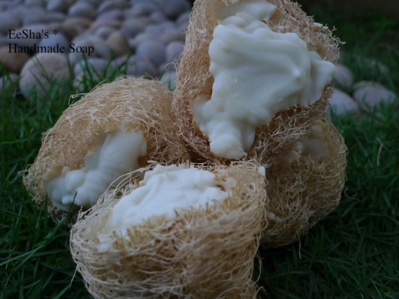 很多手工皂玩家都会尝试的一款。 把皂液灌入丝瓜内, 利用丝瓜的纤维来做去角质的功效。经济又环保。